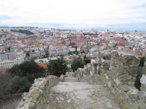 Ziua 4 – Dupa micul dejun ne-am incarcat cartelele cu abonamente de o zi (6 euro), apoi am luat metroul pana la statia Martim Moniz. Scopul venirii noastre aici a fost tramvaiul galben cu numarul 28E, care isi are aici atat capatul cat si inceputul traseului. Intrucat este foarte popular si are un singur vagon sunt sanse considerabile sa asteptati la coada. Sunt utilizate nu doar de turisti ci si de localnici, iar traseele se desfasoara de-a lungul a numeroase stradute inguste, o parte dintre ele cu amplasament in panta. Nu va faceti insa griji, caci dimineata circula din 8 in 8 minute de luni pana vineri, respectiv din 9 in 9 minute in weekend. Abonamentul pentru transportul in comun include si tramvaiele galbene, existand si posibilitatea achizitionarii biletelor individuale, care costa 2,85 euro. Ne-a venit randul si noua in cel de-al patrulea tramvai sosit in statie, chiar am prins locuri pe scaun. Din pacate tramvaiul de obicei se umple, asadar odata asezati nu veti avea vizibilitate buna in partea din fata, ci preponderent intr-una din zonele laterale. Interiorul vagonului este aproape integral din lemn. Cei care nu stau tocmai bine cu rabdarea pot opta pentru unul dintre tuk tuk-urile care isi asteapta clientii vis-a-vis de statia de tramvai. Am coborat in Alfama, la Miradouro das Portas do Sol de unde am luat-o pe jos 3-4 minute pana la Castelul Sf. Gheorghe (Castelo de São Jorge). Biletele de