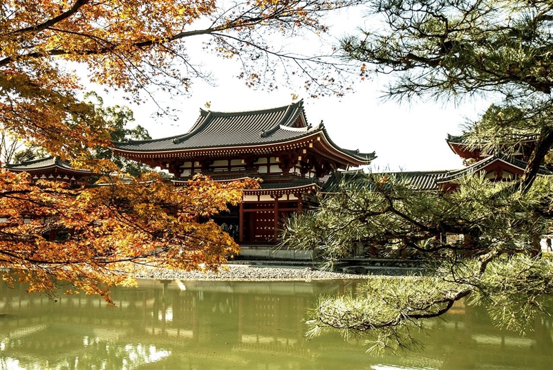 Templul Byodoin UNESCO WH, este o bijuterie a arhitecturii japoneze, loc sacru deosebit de frumos, construit în secolul al XI-lea.